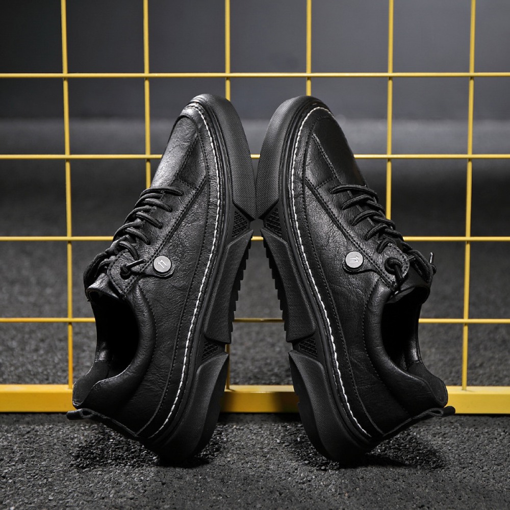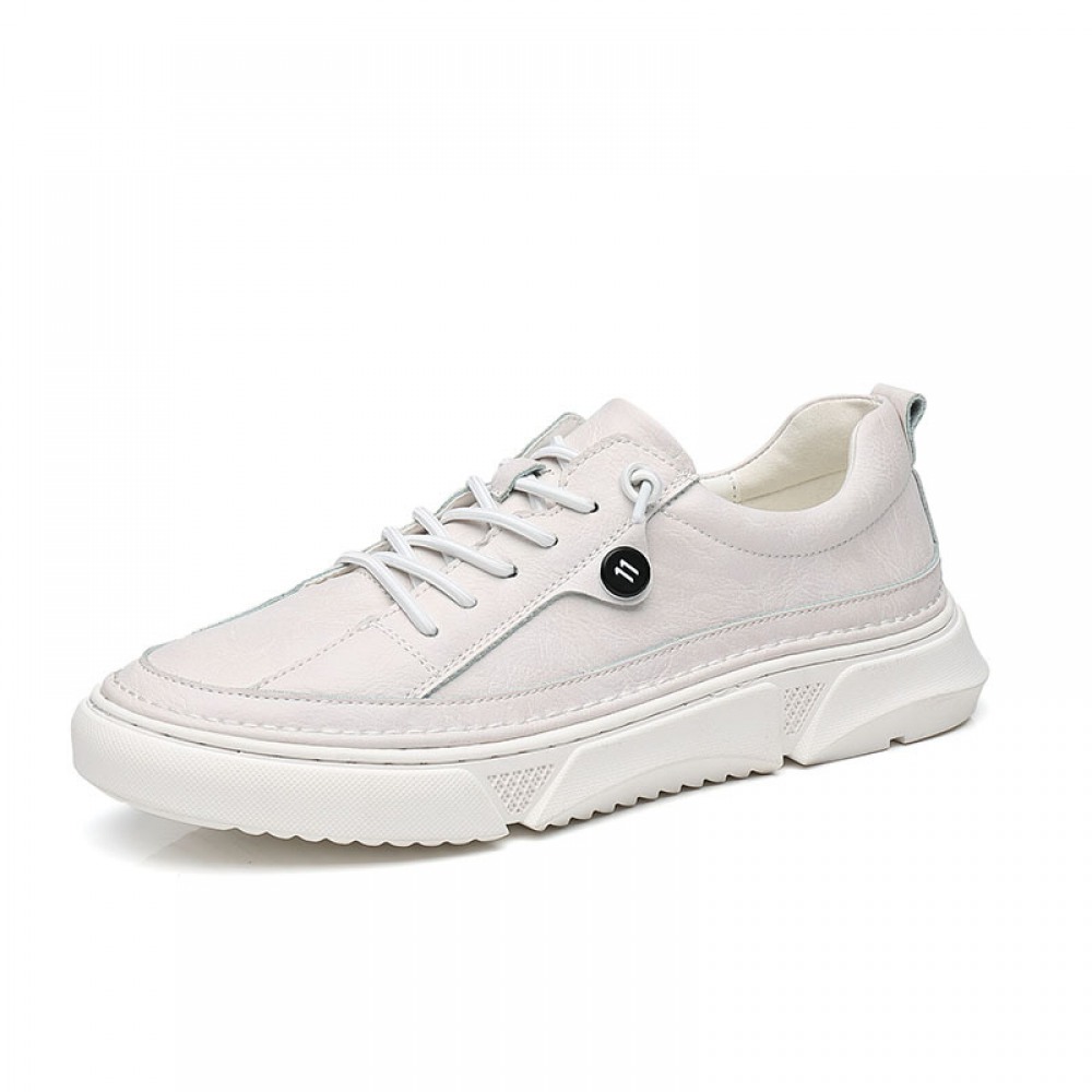 Summer Men's Board Shoes Soft Leather White Shoes Mens Leather Trendy Shoes Shell-Toe Daily Casual Shoes